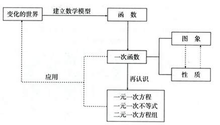 一次函數(shù)是初中學(xué)生學(xué)習(xí)函數(shù)的開始,也是今后學(xué)習(xí)其它函數(shù)知識(shí)的基石。在學(xué)習(xí)本章內(nèi)容時(shí),教師應(yīng)該多從實(shí)際問題出發(fā),引出變量,從具體到抽象的認(rèn)識(shí)事物。培養(yǎng)學(xué)生良好的變化與對(duì)應(yīng)意識(shí),體會(huì)數(shù)形結(jié)合的思想。在教學(xué)過程中,應(yīng)更加側(cè)重于理解和運(yùn)用,在解決實(shí)際問題的同時(shí),讓學(xué)習(xí)體會(huì)到數(shù)學(xué)的實(shí)用價(jià)值和樂趣。